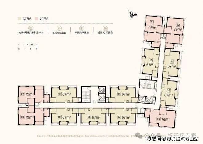 “L”形布局,避免楼道狭长的局促感,提升居住体验;电梯分区后,候梯时间减少,人流动线自然分散,提高您的出入效率。