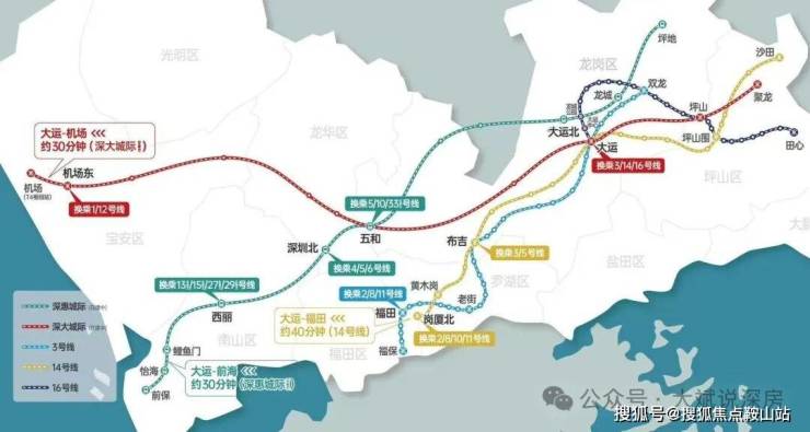 地铁:直线距离16号线大运中心站约800m,1站直达大运枢纽站,接驳3、14号线和深大城际(建设中,预计2026年底通车);
