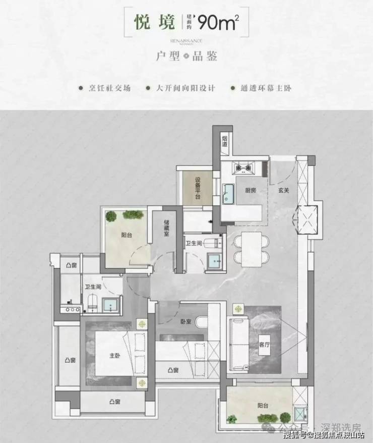 产品方面,中海云启源境打造约90-143㎡新规三、四房,使用率较高。
