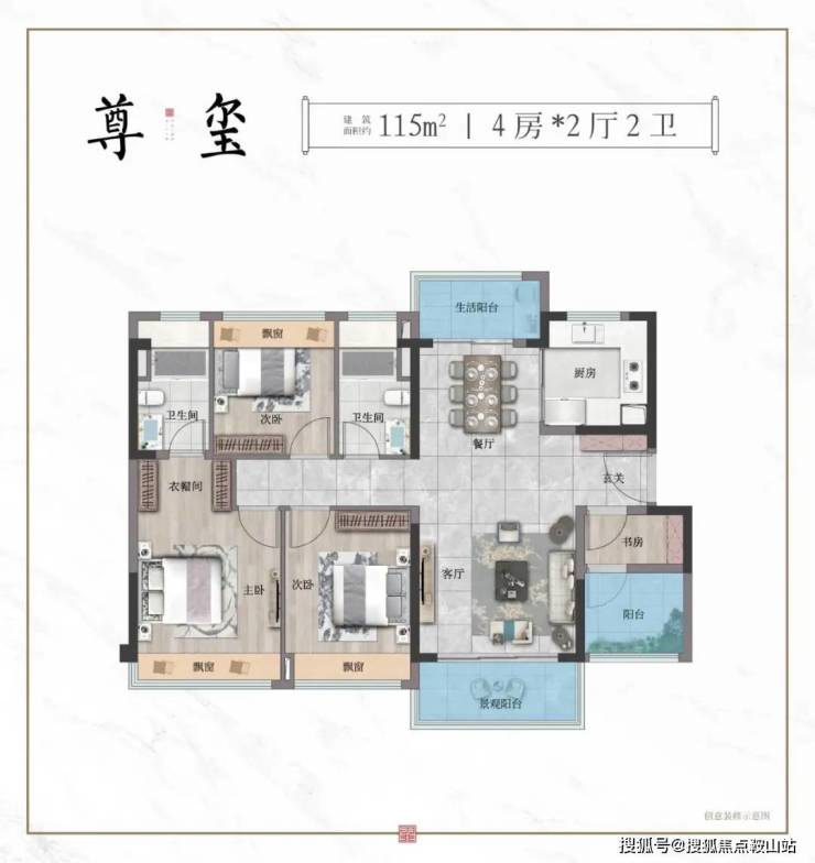 【尊玺 | 建筑面积约115㎡ 4房2厅2卫】