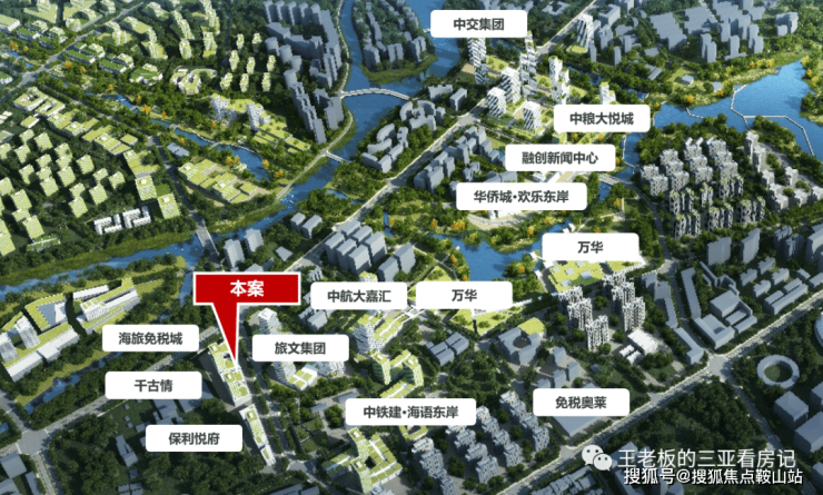 城市中心——中央商务与时尚新区项目位于三亚市吉阳区迎宾路(海旅免税城北侧)。随着自由贸易港政策落地,在总部经济及中央商务区规划中,东岸单元作为建设大型综合消费商圈+总部经济核心区。汇集中粮、中交、保利、中航、中铁建、五矿等世界500强企业,已成为三亚城市功能上的中轴城心,凝聚着最重要的部门,昭示着三亚未来发展的方向,区域价值未来可期。