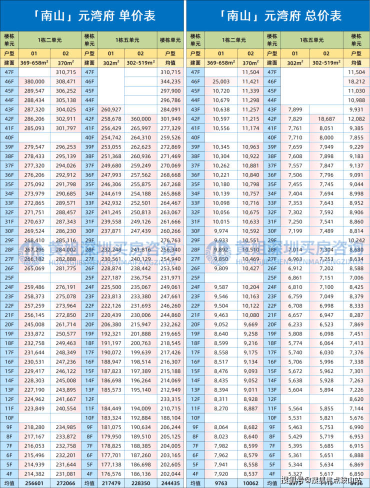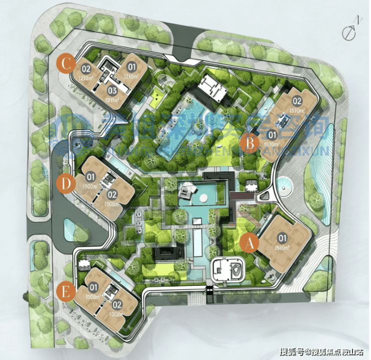 其中标准层为211-218-302-370-510㎡的3-4房,另外顶层复式有518-655-938㎡户型。
