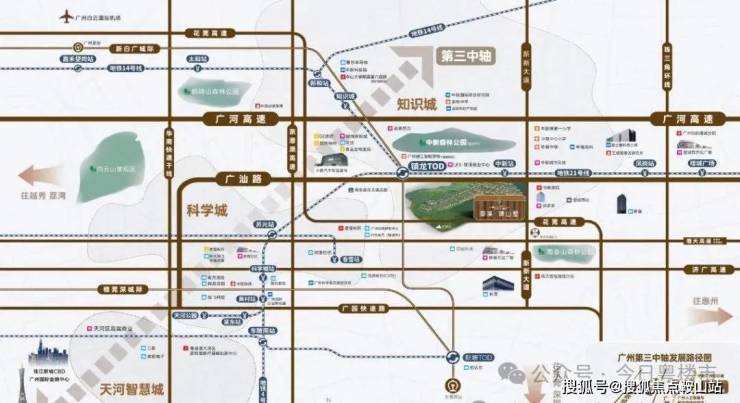 项目距地铁21号线中新站仅约500米,通过家门口的21号线,便可实现1站镇龙TOD、4站天河。而镇龙TOD,又可进一步握手“3地铁+1城轨+5高速”的超级路网,通过14号线可快速畅连黄埔、白云核芯区;搭乘新白广城轨,2站可达新塘,从知识城出发,到达白云机场仅3站,连接穗莞深城际直达深圳机场,快意纵横大湾区。