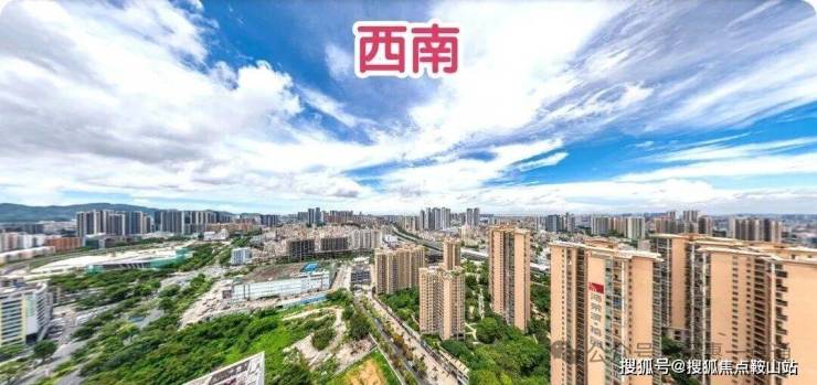 西南:看国际会展中心方向,朝小区外部,18层以下视野会受到鸿荣源禧园建筑影响,近距能看到鸿荣源禧园局部花园景观,远处有一些超高层建筑,但密度不高,18层以上视野都会比较开阔,只是远处低矮老旧建筑太多,城市面貌观感欠佳,只有高层段个别角度能隐约看到点海景。