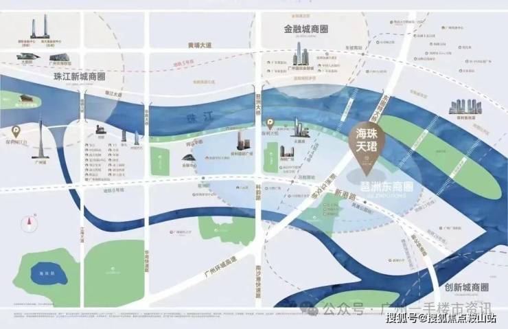 保利招商·海珠天珺位于珠江南岸,基地周边现状为低层、多层建筑,属海珠区琶洲东板块。
