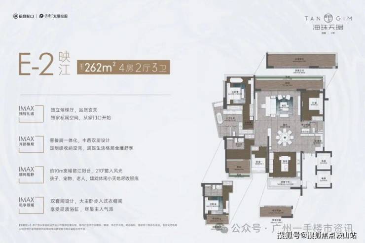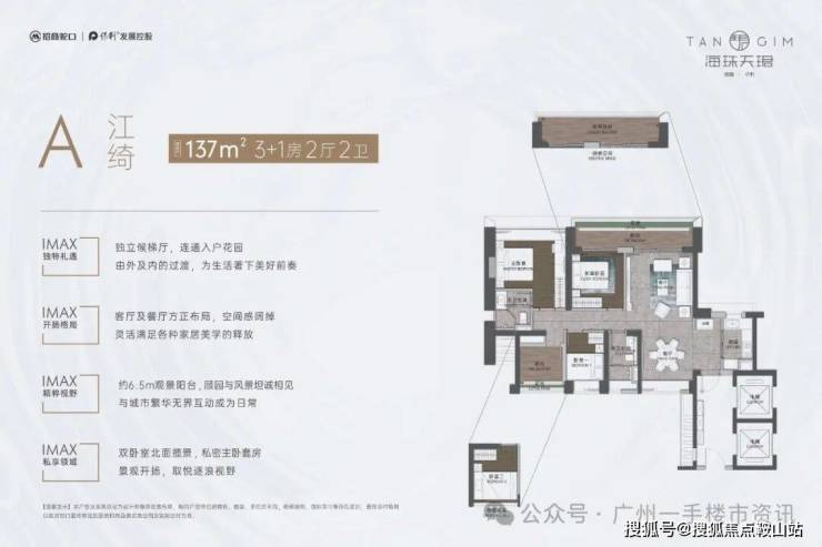 海珠天珺二期推出4栋、5栋住宅,面积段分别为:137平3+1房、138平3+1房、141平3+1房、200平4房、262平4房,价格约8.5-11万/平。