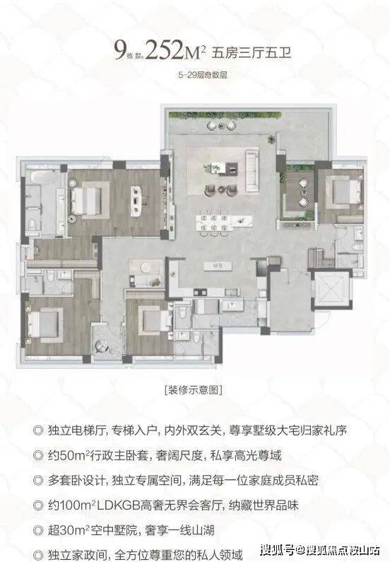 4、建面约252㎡终极改善,坐拥约100㎡高奢无界会客厅!