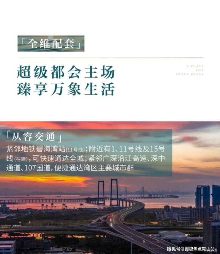 轨道交通方面,项目邻近地铁11号线碧海湾站,1站可达宝中、3站直达前海,快速串联后海、深超总等核心商务区;规划中的地铁15号线(前海环线)海城站未来将落地周边,串联前海、大铲湾、留仙洞等产业高地,实现人才自由流通。公路交通依托宝安大道、广深沿江高速、深中通道(已通车)等“川”字形路网,30分钟内可直达福田中心区、深圳机场,15分钟抵达科技园,通勤效率极高。