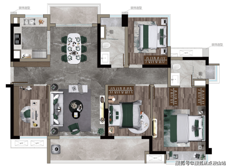 如果你想一步到位,建面约131㎡是不可错过的明星四房。