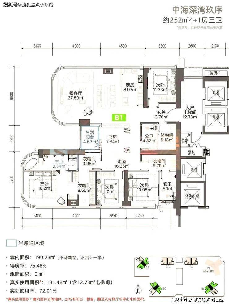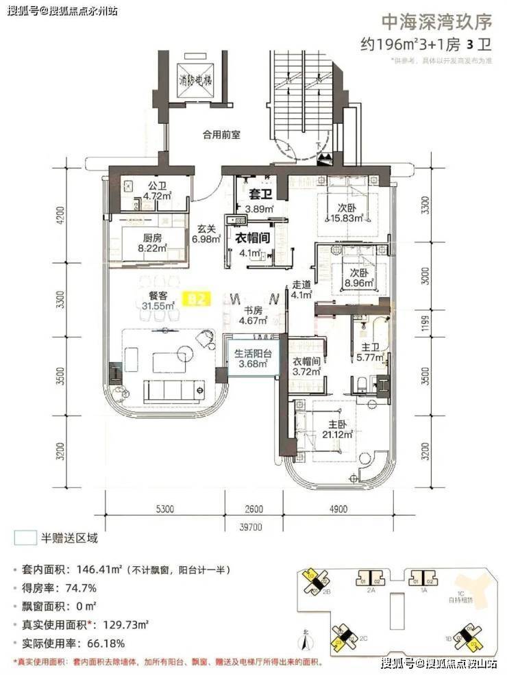 深湾胤府共规划6栋超高层(含1栋自持租赁住房),将推出514套住宅,户型面积段包括有约190㎡3+1房四卫164套四梯三户、约250㎡4+1房三卫207套四梯三户、约315㎡4+2房五卫138套三梯两户(专梯专户),另外还有410-520㎡之间的顶复。