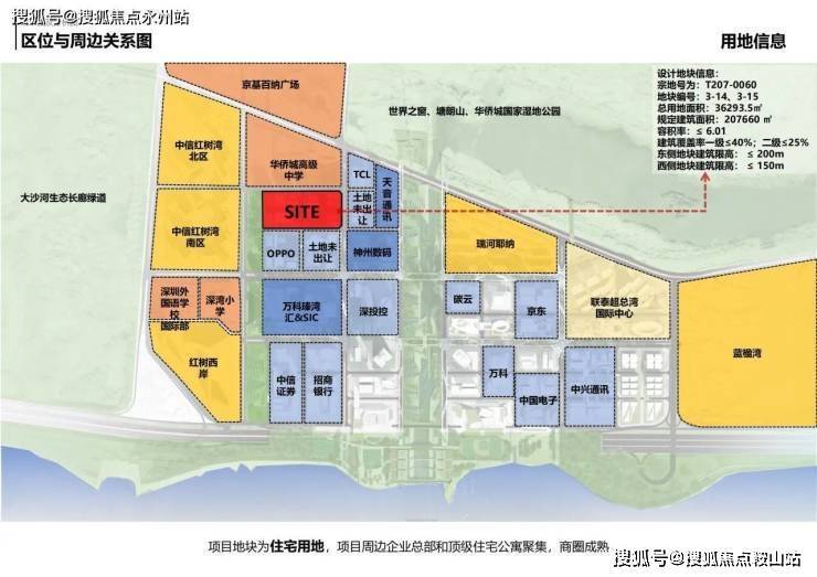 地块位于深超总片区,靠近2号线红树湾站约200米,一路之隔就是知名的万科臻湾汇项目,西侧是深圳湾超级总部基地城市展厅和中信红树湾豪宅楼盘,北侧是南山实验教育集团华侨城高级中学。