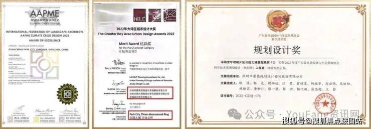 国内外选评载誉无数,区域国际铸就战略高地。问鼎国际ILFA顶级荣誉以及荣获2022年大湾区城市设计大奖、广东省风景园林与生态景观协会科学技术奖规划设计(规划类)奖项。