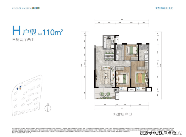 ?H户型——建面约110㎡三房两厅两卫