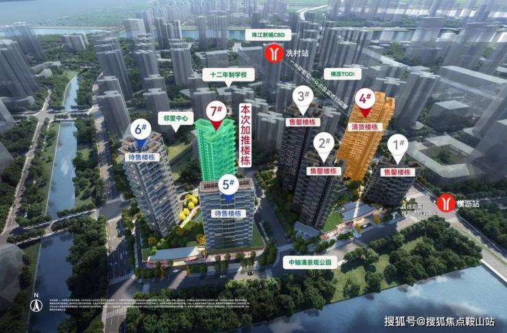 基础信息• 用地面积31180平方米,总建筑面积123627.84平方米,住宅面积76909.82平方米,底商面积584.18平方米,公建配套面积456平方米。• 机动车车位数782个,非机动车车位数783个。• 容积率2.5,绿化率30.41%。• 地块位于南沙横沥岛,在广州地铁18号线横沥站西侧约300米处。横沥岛作为全国首个国际金融岛,对标纽约曼哈顿,未来会集聚众多全球金融重器,发展预期和投资价值高。