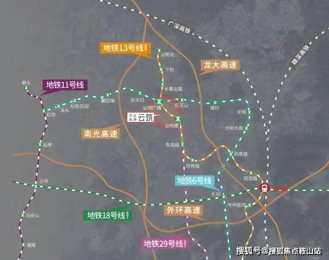 项目交通优势突出,坐拥“双地铁+双高速+主干道”三维立体交通网络,兼顾日常通勤与跨区出行需求,适配南山、福田及光明本地上班族,尤其贴合光明科学城、南山科技园的科创人才通勤需求。地铁配套方面,距离在建地铁13号线(北延)公明南站(又称南庄站)直线距离仅600-800米,步行约10-15分钟可达,该线路被誉为“科创通勤大动脉”,预计2026年全线开通,开通后3站可到南山科技园,6站抵达后海总部基地,40分钟内可通达南山核心、深圳湾口岸,彻底解决跨区通勤痛点。
