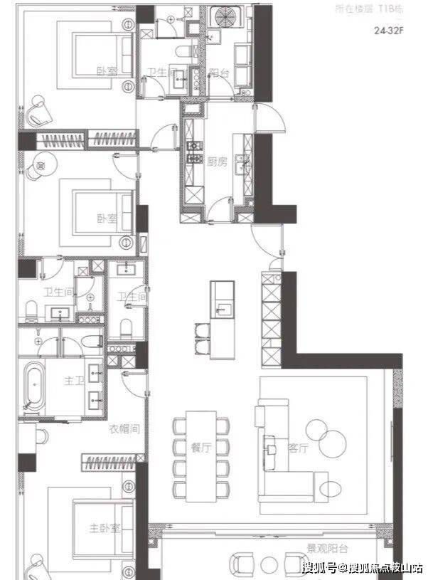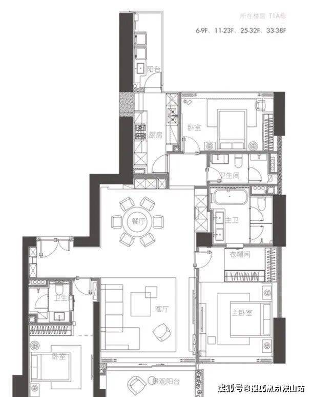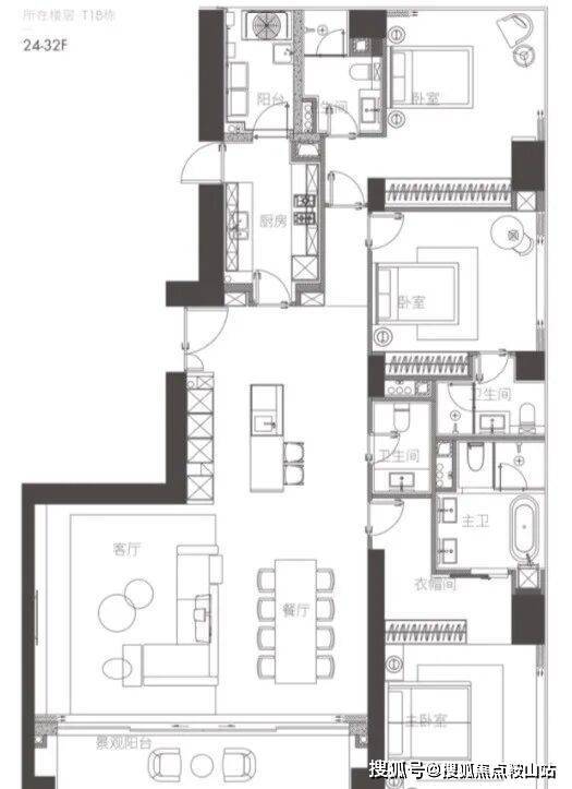 3. 主卧L形全景落地窗,270°最佳观海位。南向超大三厅一体,奢华大气。