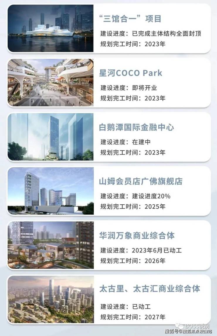 商业配套完善:项目旁广州首座万象城已正式动工,体量高达约 26.9 万㎡,预计将引入超 500 + 重奢品牌,此外,可快捷即达花地湾 TOD 超级购物中心,地铁 1 站至领展广场,驱车约 20 分钟还可享聚龙湾太古商业、广船商业综合体、星河 COCOPark 等商业圈。