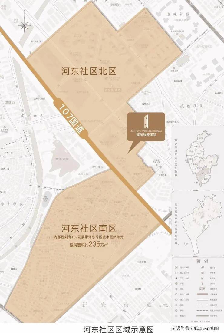 河东社区作为大型社区,分为南北两大区域,打造河东百万大城,其南区规划107发展带城市更新单元,总建筑面积达235万㎡,集办公、商业、酒店、公园等多元业态,带动人流聚集。