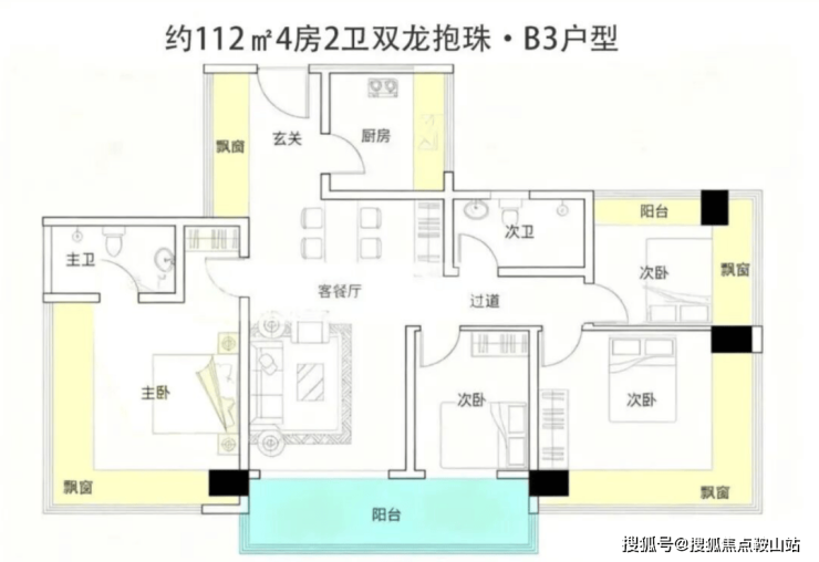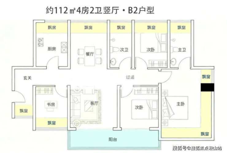 约105-122㎡四房:作为“功能型品质起步”户型,凭借新规下的高实用率(包含赠送得房率约100%)选。主卧均带270°环绕式飘窗,户型设计通过飘窗“送了不少面积-。