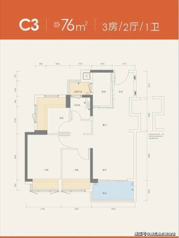 竖厅格局,客厅3.4米开间,3个卧室分别做到了主卧10.99㎡/次卧7.3㎡/次卧5.91㎡,还带1个设备平台,赠送面积高达12.71㎡,实际得房率约97% 含赠送,西南/东南或西北朝向。