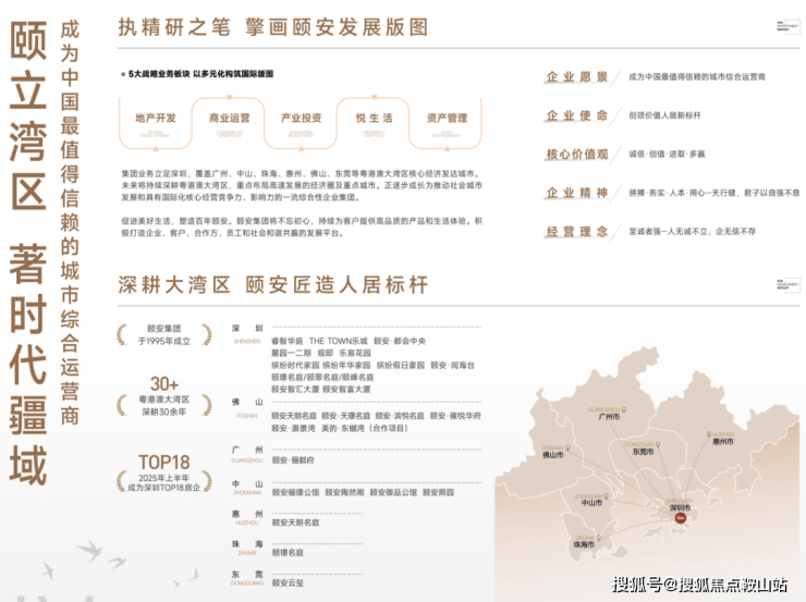 颐安集团,一家集地产开发、商业运营、产业投资、悦生活、资产管理五大产业的综合性大型投资集团。自1995年成立以来,深耕粤港澳大湾区30年,立足深圳的同时,业务覆盖广州、中山、珠海、佛山等粤港澳大湾区核心经济发达城市,开发面积超500万+平方米。