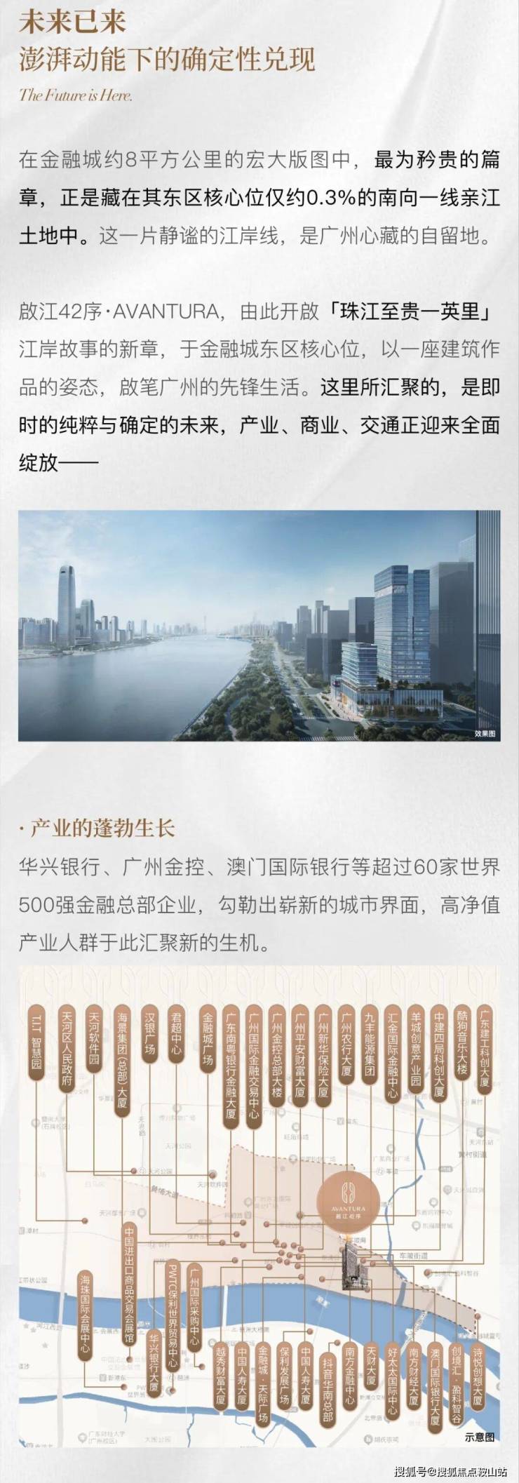 珠江新城是凝固的传奇,而国际金融城是奔涌的未来它托举着广州在世界舞台上更进一步的雄心,约8平方公里的金融城,约80%的土地被赋予金融总部、数字经济等国家级战略使命留给一线亲江生活的土地,仅仅只有约0.3%这天赋珍贵的留白,谨为少数生而不凡者而留。