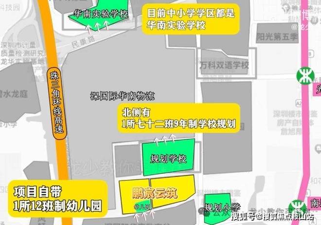 学校:项目北侧规划有广东省一级学校建设标准的72班九年一贯制学校,还有18班小学规划,近邻华南实验学校、万科双语学校。目前小学、初中学区都是华南实验学校。