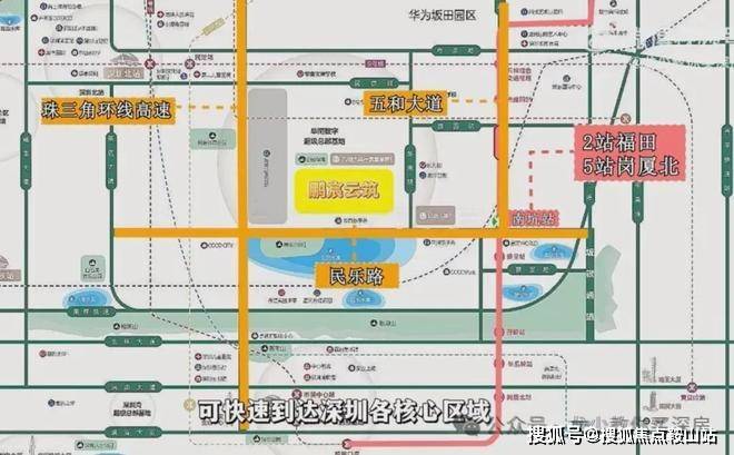 港深科技中轴之上,向南连接河套深港科技创新合作区、福田CBD,向北连接坂雪岗科技城,享有龙华福田双中心配套服务。