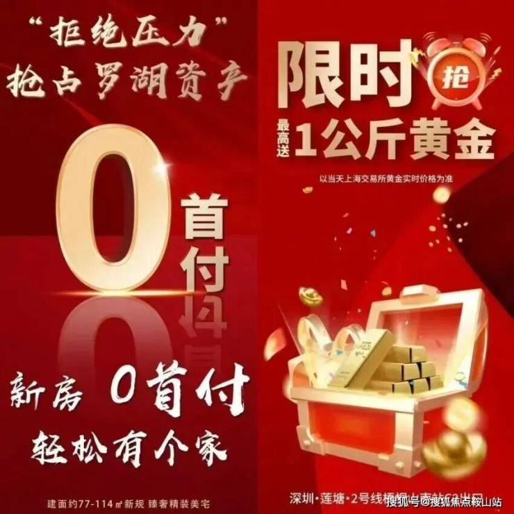 【定金10万,真0首付,上车罗湖精装三房】送黄金或现金,放款后首付返还,限时最高送1公斤黄金或等值现金!