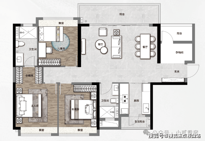 在售建面约105-125㎡三至四房品质现房。智能健康精装交付标准,配置全屋新风系统、净水系统、厨余垃圾处理器、多功能鞋柜、主卫配置智能魔镜及智能马桶盖等,以细节打造智慧家。