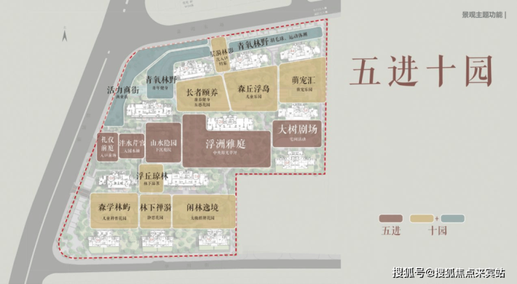 整体景观以"洲岛、宋韵"为魂,通过"一环三洲"架构,五进十园呈现,打造具有岭南基因的现代住区。詹园礼序、中山在地文化与空间结合,以特色植物营造四季画卷,实现具有地域特色的悦系理想人居。