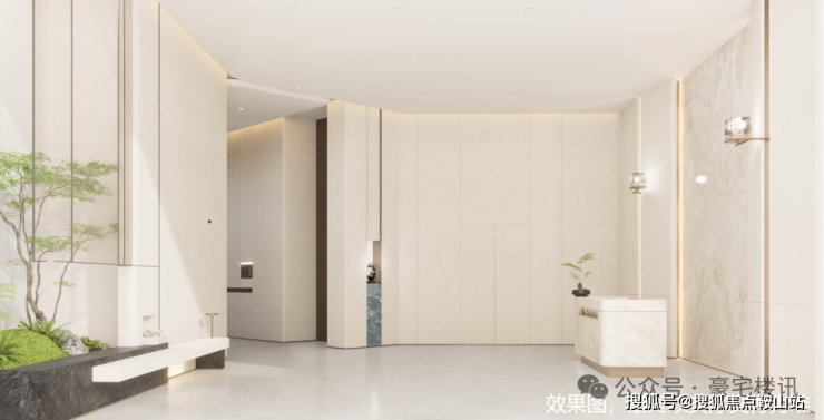 石材景墙+艺术水景+小叶紫檀组景,豪宅级归家体验。