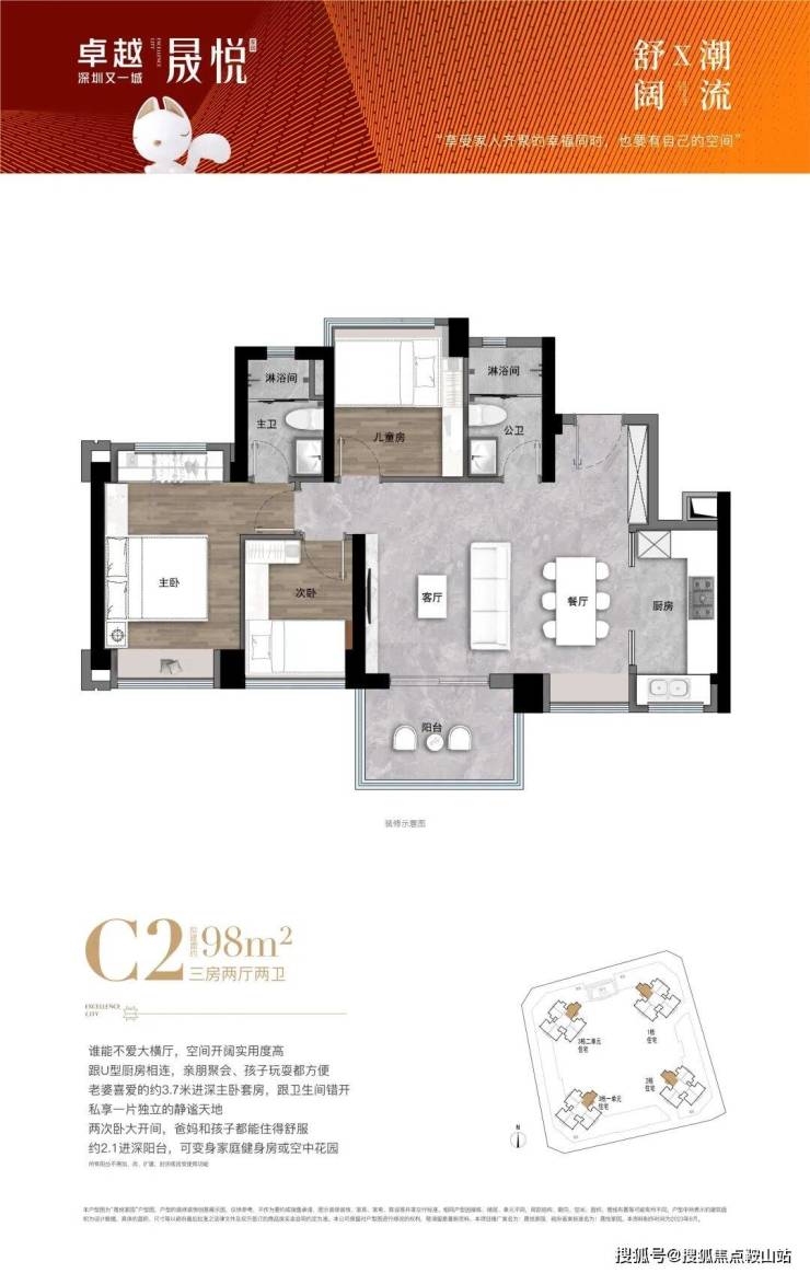 三房最大约2.1m大进深宽景阳台:城市观景台、马峦山观景台,亲子露营、居家健身、撸猫喝茶等多种体验,实现第三空间的趣味延伸