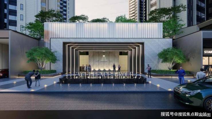 轻奢落客式大门:宽约23米气派门楼,艺术水景与铁冬青乔木