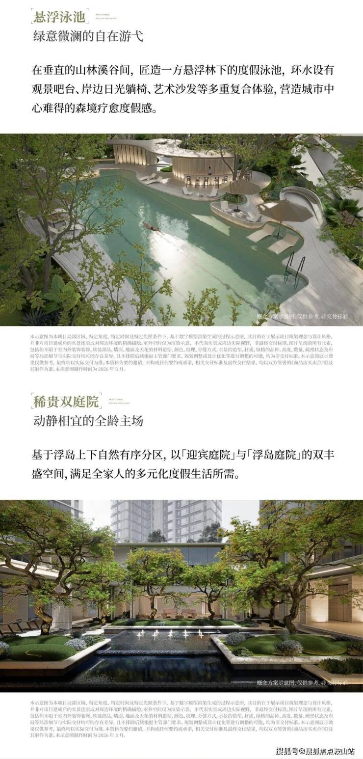 板上,则是私属的静谧居住浮岛,塔楼一字排开,享宽阔楼距与全景视野。浮岛泳池与立体园林,共同营造空中山水度假谧境。