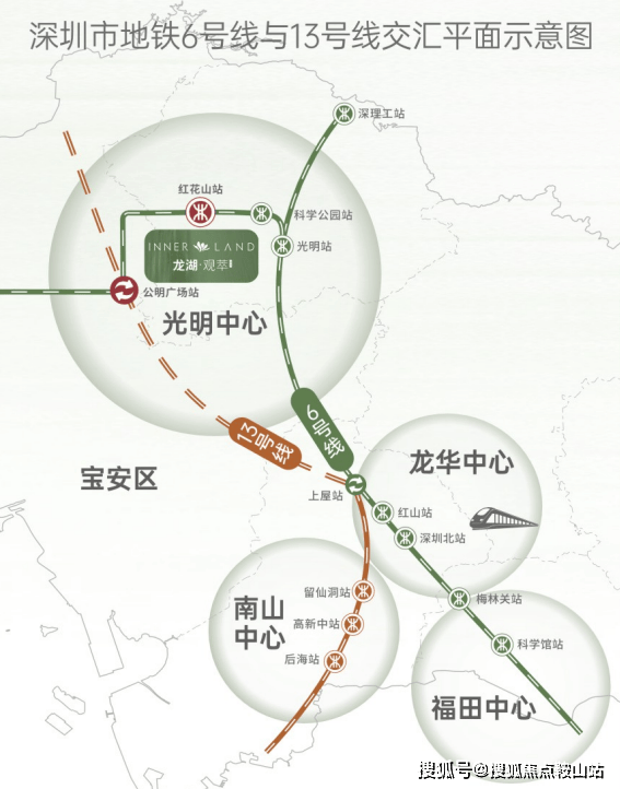 梳理光明区的地铁网络,光明中心只此一站拥有双轨交汇。