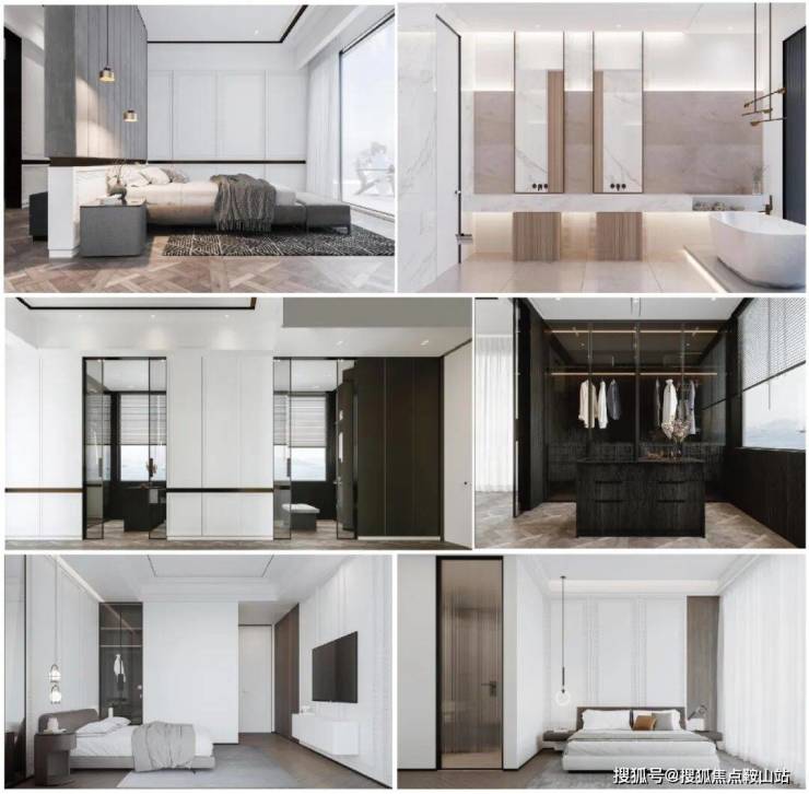 约85㎡及83㎡五件套双主卧套房,24㎡及18㎡男女独立衣帽间,12㎡干湿分离独立卫浴+观海浴 缸,内设约10㎡私密书房,外接瞰海空中花园,阳光、海景悦享极致旅居生活。