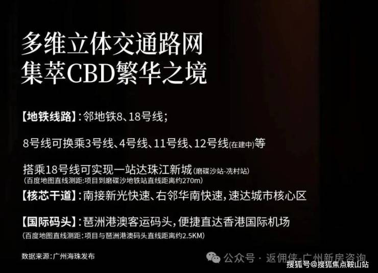 地铁:项目毗邻8/18 号线磨碟沙站,18 号线1 站直达珠江新城商圈;