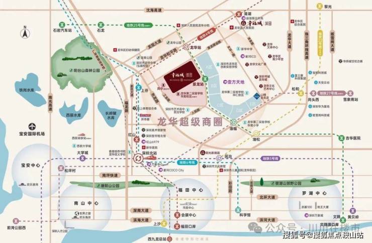 项目占位龙华超级商圈几何正芯,龙华商业中心城市更新北片区,傲踞天赋C位地块。