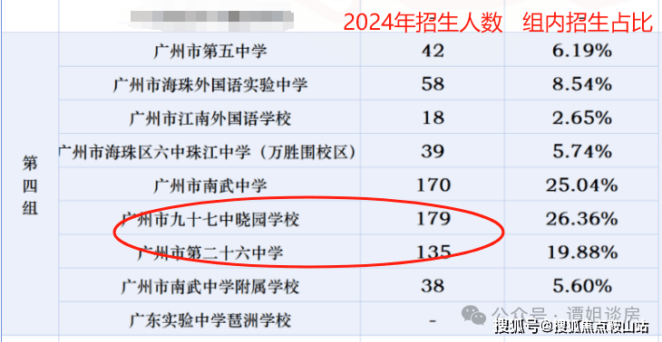2023年以前,这个分组南武大头,4成学生可以进去,但是到2024年,第四组一共摇679个学位,、97中晓园,前身是晓园中学比提高,一共招生179人,相对比较差的26中,135人,会有小半的学生进去了这所学校。