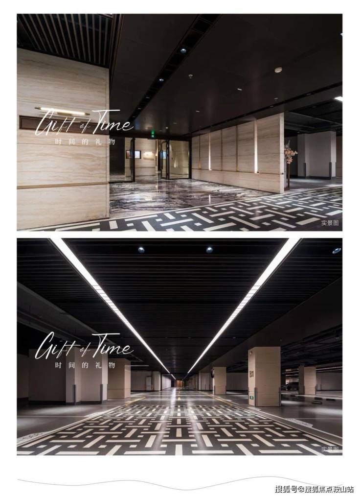 车马厅车道采用香港太平山别墅常用的环氧磨石材质,现场手工拼图、精细打磨而成。墙面采用虚实结合的设计手法,中间设置镂空区域,搭配缝隙中向上投射的灯光装置,让灯光与两侧意大利进口石材本身独特的纹理相互辉映,形成独特的归家仪式感。