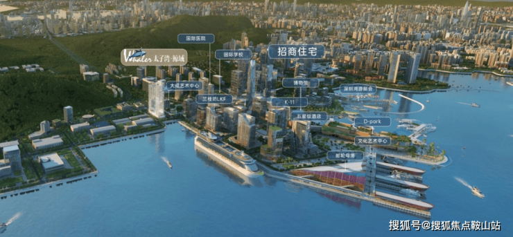这里是“前海扩容和香港北部都会区”两大重要战略的枢纽,时代赋予这片区域优先发展的红利,南山区也提出以赤湾片区、太子湾片区、蛇口片区为主要承载区,瞄准海洋科技、海洋文化、港口经济等产业方向,打造约12平方公里蛇口国际海洋城一湾三坊,太子湾城中之城。