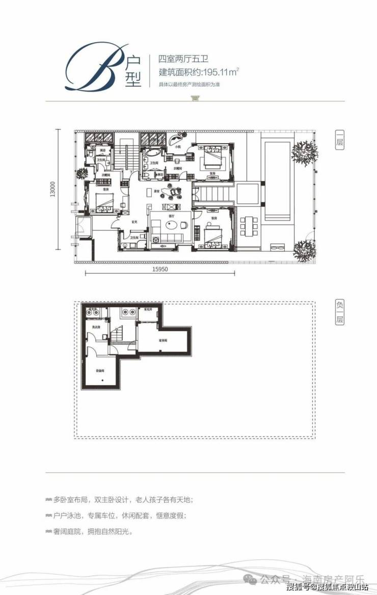 B户型:四室两厅五卫 / 建面约195 ㎡