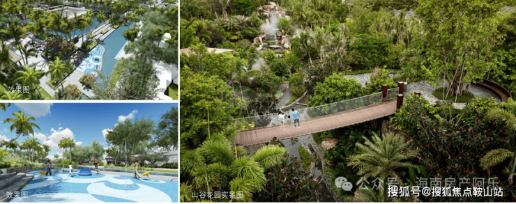 一二期交汇处,引水系为景观轴打造山谷花园,10米高差瀑布,吊桥、栈道、溪水等,营造和谐自然的活力休闲区。