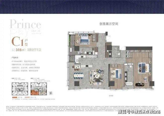 面积:215㎡2房2卫,306-311㎡3房2厅3卫,415㎡4房3厅5卫,