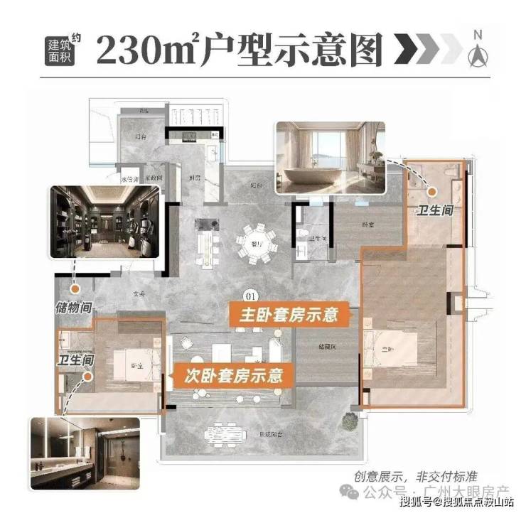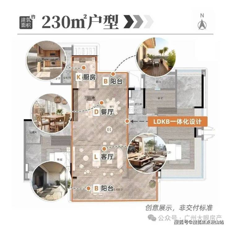 230平户型拥有私家电梯厅、双主套、独立佣人房、南北对流、LDKB大方厅、主卧L型270°飘窗等,大大提升了整体的空间体验。