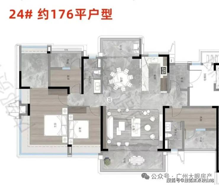 仅两款户型,西南向的约176平、东南向的约215平。
