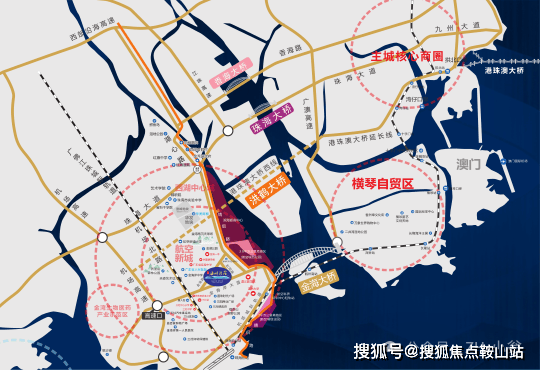 左边航空新城,右边横琴澳门。金海大桥连接横琴澳门,洪鹤大桥快速通达主城核心。三灶依托国际航空产业打造空港新城,未来将打造成为横琴后花园居住区以及航空城服务中心。珠海三灶+横琴=深圳宝安+前海。