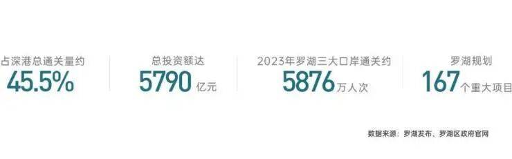 深圳繁华原点罗湖,立足““三力三区”产业发展新战略定位,汇聚约100家持牌金融机构,将孵化30家以上国际创业企业;罗湖、莲塘、文锦渡三大口岸年通关5876万人次,口岸周边聚集约6000家香港企业。