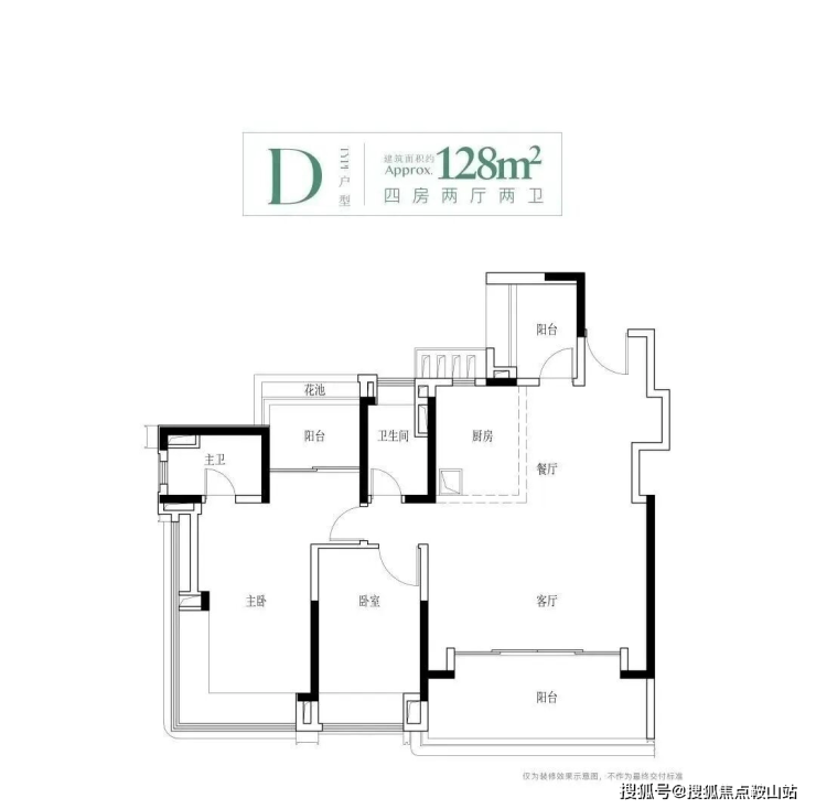 建面128平四房,目前首开楼栋只有4栋有,竖厅设计,位于组团中心位置可以看到小区园林以及江景,还有6米的宽景阳台。